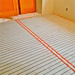 Installing floor heating.